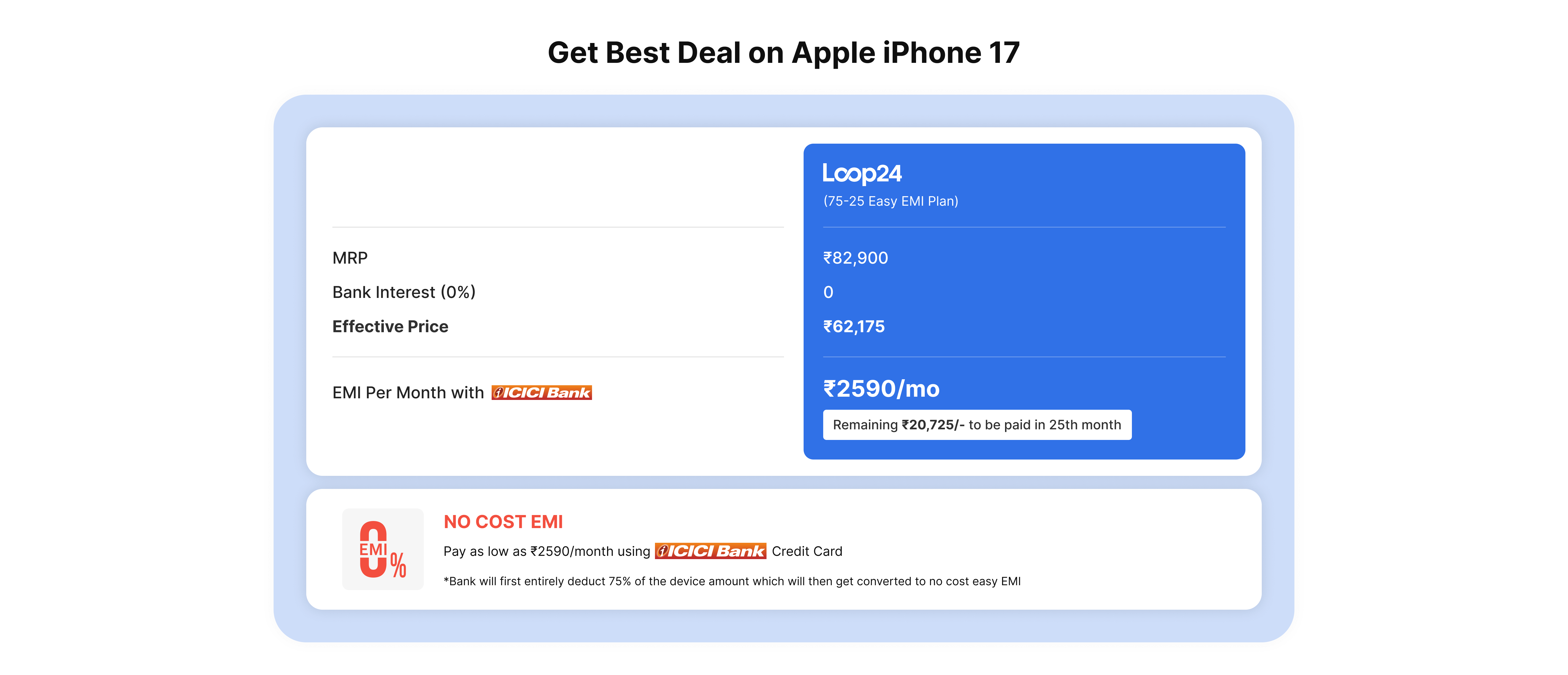 I was looking for a budget friendly iPhone and I got to know about the Loop24 EMI option. I bought an iPhone 15 and after 24 months I have an option to upgrade and get an assured cashback. It's a great way to keep up with new tech without breaking the bank.